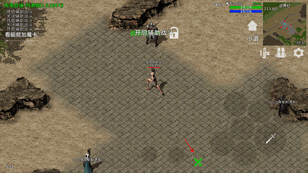 3、点击下方箭头按钮可以开启辅助战斗,也叫自动寻路战斗