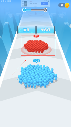 2、玩家需要增加自己一方的人数来与敌人对抗,底部会显示当前人数和目标提示,方便玩家查看进度。