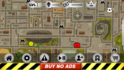 在操作上,左侧可实现移动与加速,右侧对应绳索、攻击(含跳跃)以及单纯的跳跃功能。右上侧能进行武器更换,同时血量与经验的显示会实时更新,清晰明了。玩家可凭借自由的玩法,与其他帮派人物交火。在交火过程中,成功杀人可获取经验,杀人数累积到一定程度便会产生星级。一旦星级出现,警察以及附近的其他角色会格外“关照”你,对你发起猛烈进攻。此时,如何生存下来并将其他人物成功击杀,就成了你需要完成的任务。