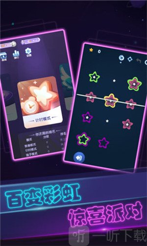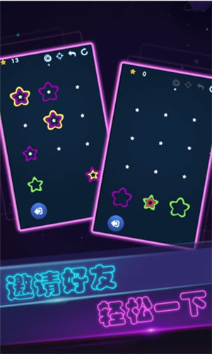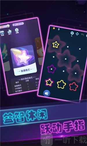 3. 游戏中的普通模式是最经典的,线上有相同颜色的三颗星,消除这些星星。