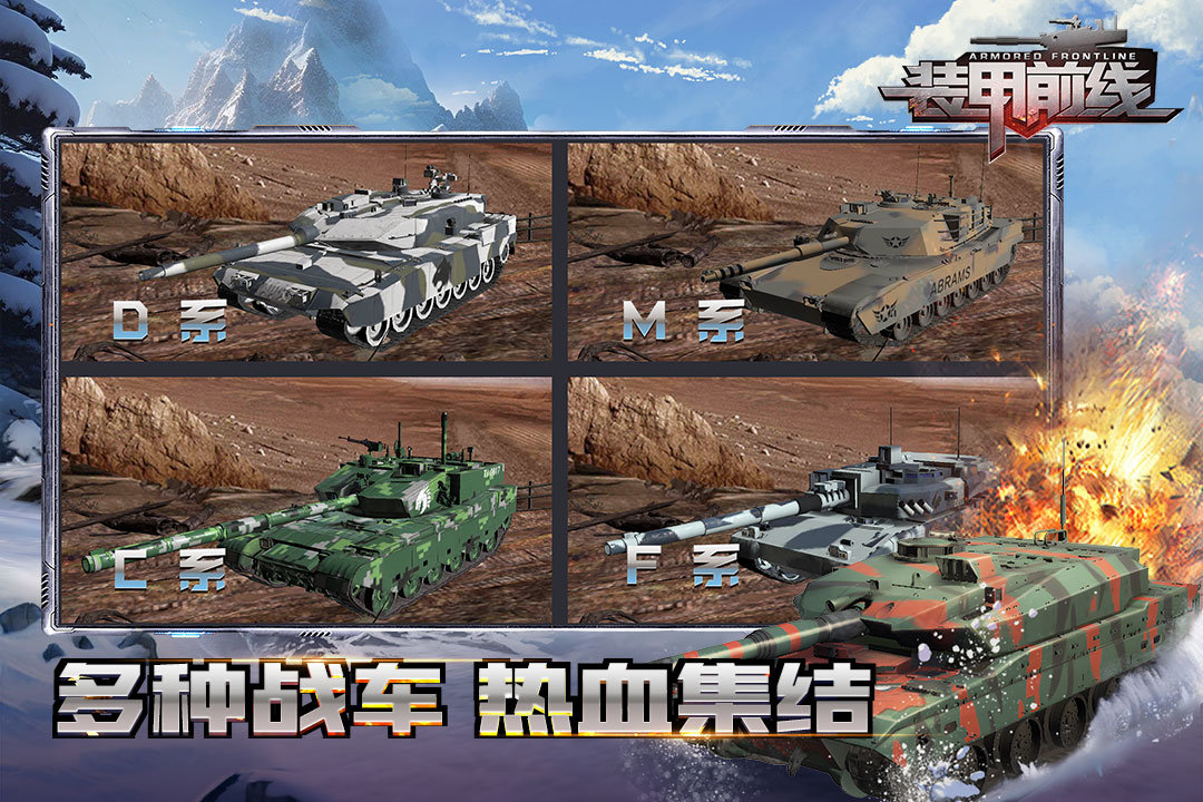 游戏以现代陆战载具为蓝本,开放9辆载具供您选择,各具特色的强大战争机器必将引燃战场,独特而丰富的载具技能,助您出其不意,克敌制胜,载具支持升级改造,你口语任意改造你的载具,自由度非常的高。除此之外,装甲前线手游有多种战斗模式,多种场景和战术游戏玩法,你不仅可以进行单人匹配,还可以组队参与游戏竞争,享受游戏的乐趣。