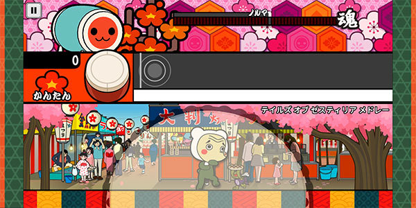 每首歌都附有一个音符。让我们根据音符打鼓,选择你喜欢的太鼓达人开玩。