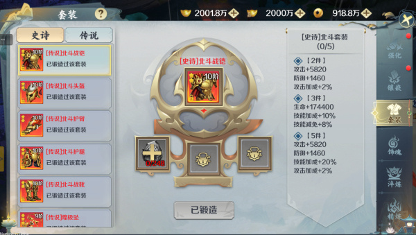 当你获取的套装装备数量越多,就能得到额外的套装属性。而且,你还能够借助套装石,将头盔、衣服、护腿、鞋子、护手、项链以及圣器打造成套装。同阶级的装备被锻造成套装后,每成功锻造2件、3件或者5件,都能获取相应的套装属性。