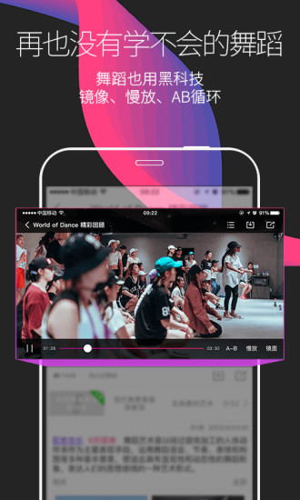 学舞也能利用高科技,慢放、镜像播放、AB段循环,让任何舞蹈都不再难以掌握;