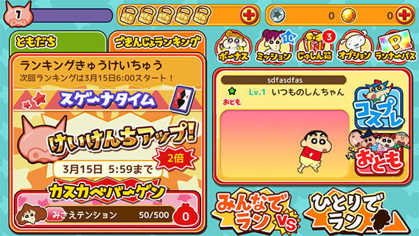 3、游戏中的各种的经典的角色风间、正男、妮妮或者阿呆都可以让玩家来使用跑酷。