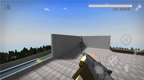 操作十分简便,左边负责移动,右边用于射击,点击左上角可切换武器。用手中所持武器点击物体,会出现蓝色引线,把它们连接起来,随后通过滑动屏幕就能移动这些物品的位置。
