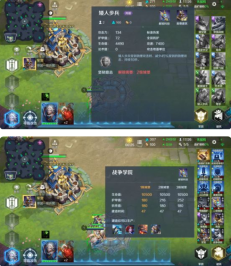 再点击“对战详情”可以查看到对手和队友的基地等级、英雄等级、资源情况、配兵情况、兵营类型和数量。