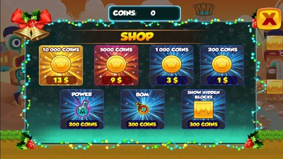 在通往危险冒险的路上,您可以收集硬币,您可以用它来购买商店中的电源项目,例如:电源,炸弹,显示隐藏的块。