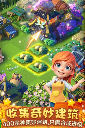 1、合成收集,经典三合一升级玩法,超过400种物品可收集,互动。