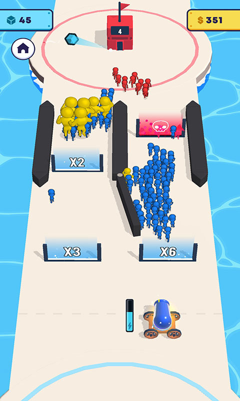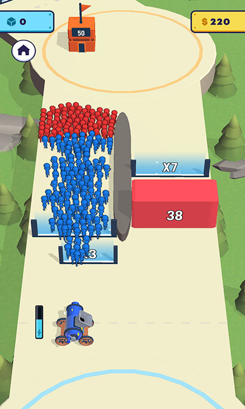 每一次当大炮喷射出蓝色小人的时候,就会极大的增减红色小人的数量。