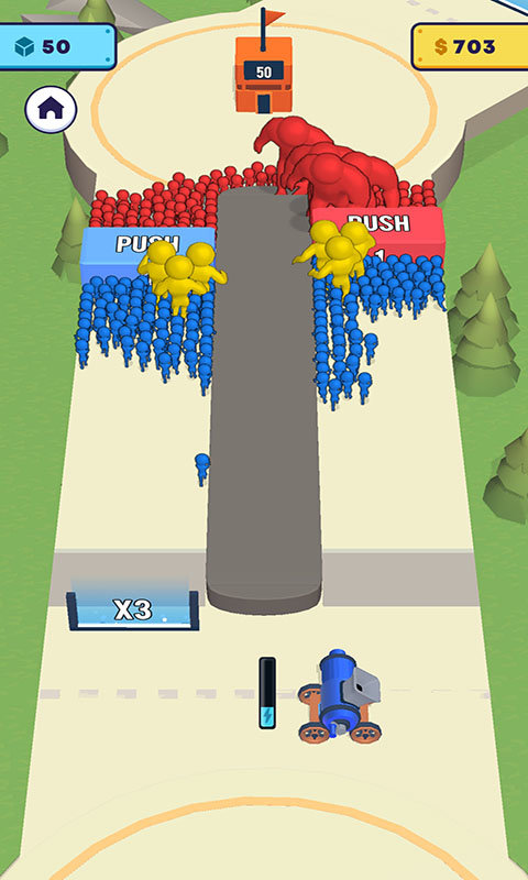 每一次当大炮喷射出蓝色小人的时候,就会极大的增减红色小人的数量。