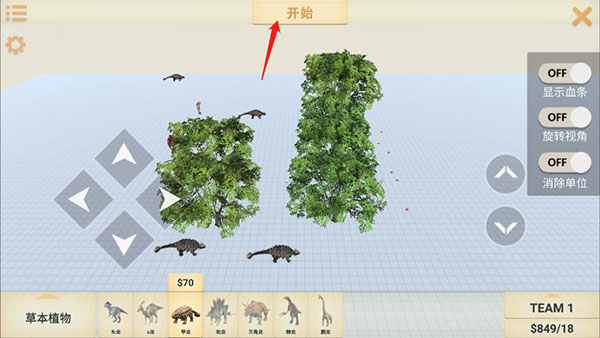 5、如果选择沙盒模式,你可以自由的为作战双方设置动物和兵种;
