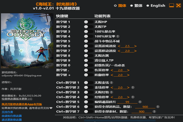 海贼王时光旅诗修改器19项修改功能很全面,经典的无限血量,还能增加战斗的暴击率,让你真正拥有海贼王主角的示例。还有各种编辑功能,感兴趣的小伙伴,用修改器的加持,在此勇闯海贼世界吧。