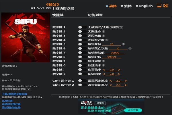 师父修改器让你在这款硬核格斗的游戏中更好的发挥,这里让你直接进入无敌模式,战斗的容错率极大的提高。防御和生命值都将来到最大值,还能一键击杀对手,感兴趣的小伙伴,点击下载感受吧。