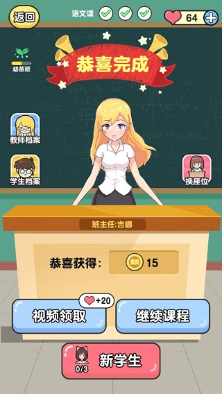 此外,这款游戏的体验远超于此。除了充满趣味的闯关休闲小游戏,教书育人乃是班主任的核心任务。点击“我的教室”,你会发现有更多班主任角色可供选择。学生座位调整、新学生解锁以及课程教学等,都是该游戏别具一格的亮点。接下来,就让我们一同去瞧瞧吧!