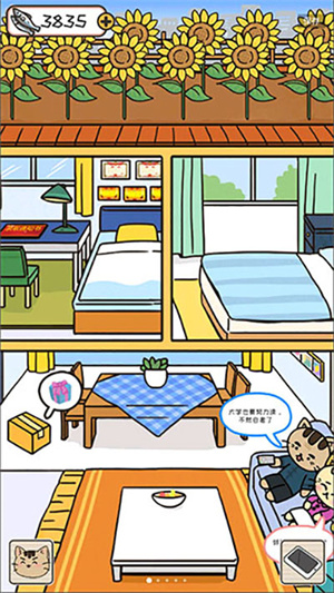 在这个情境中,玩家将担当家长的角色。你要做的是关怀在外求学的猫儿子,在这过程中,你能够给他寄送生活用品,也能够通过短信与他交流,时刻关注他的衣食住行情况。