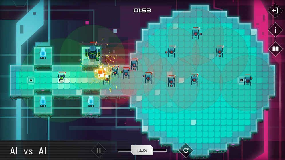 在游戏后期,玩家要为多个不同类型的机器人编写不同的行为模式,并让它们配合过关,具有相当的挑战性。