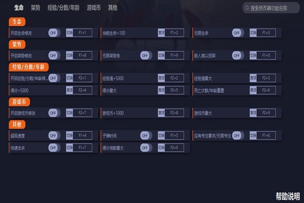 3.开启修改器各主初始项再使用各子修改项[无主初始项则不用开启][主初始项:如开启...修改]。