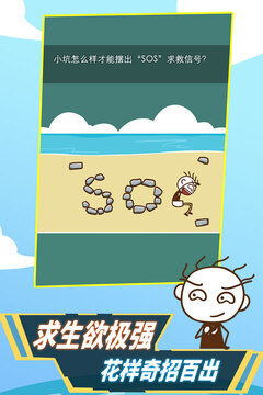 史小坑!活下去!是一款极具趣味性的解谜游戏,游戏中的主人公史小坑因意外流落到荒岛上,在这里会遇到各种各样的生存难题,缺水断粮、面临危险,遭遇野人,要解决各种问题,才能在岛上生存下去,设计百余个爆笑关卡,玩家的任务就是需要挑战不可能,让史小坑活下去,赶紧头脑风暴起来吧。