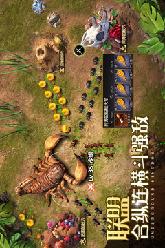 带领你们的蚂蚁军团在广阔的区域来进行战斗,为了地盘和其他的生物来交战;