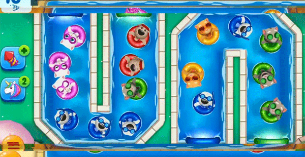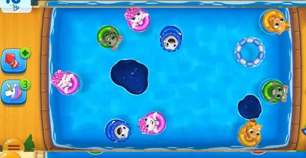 一旦一个颜色进入气泡里,就会停下来且无法出来啦!想要让气泡消失的话,就要让整个泳池同样颜色的人物进入气泡,直至整个泳池所有同类进入气泡里,气泡才会消失!
