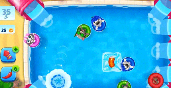 游戏更新至2.0版本后,新增了超级滑水特殊关卡。只要你能在不失败的情况下(所有关卡中途退出均默认失败,但失败不会扣除游戏生命,不过其他关卡失败一次会扣一个游戏生命),连续通关5个不同的超级滑水特殊关卡,就能获得免费抽3次大奖的机会,抽奖会依次获得金币、道具、钥匙等奖励,总体肯定是赚的!首次参与免费,算是官方福利。但后续每次参与基本都要花费50个金币,而金币在游戏中较为稀缺。 游戏过程中,你会看到很多人物从滑梯滑下,要注意,有时滑下的人物会结冰。泳池里也常出现冰块,冰块中可能藏着辣椒和豆子,能帮你消除更多人物。玩法很简单,在限定步数内,按游戏要求消除对应颜色的小伙伴即可通关。(技巧和普通关卡类似,有时也得靠运气。)