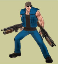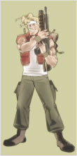 数年前就加入了佣兵部队,但此外其过去情报不明。与拉尔夫上校是长年以来的战友,时常共赴战场。就像拉尔夫一样,也有无数关于他过去的谣言及神秘传说。只有通过与拉尔夫初次参加格斗大会的成绩,才能得出其战斗力的一些线索。