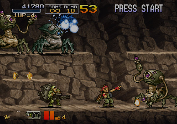 鉴赏模式:分音乐库和图库两部分,收集了从《合金弹头》至《合金弹头6》的数百幅原画手稿和所有的原声音乐。