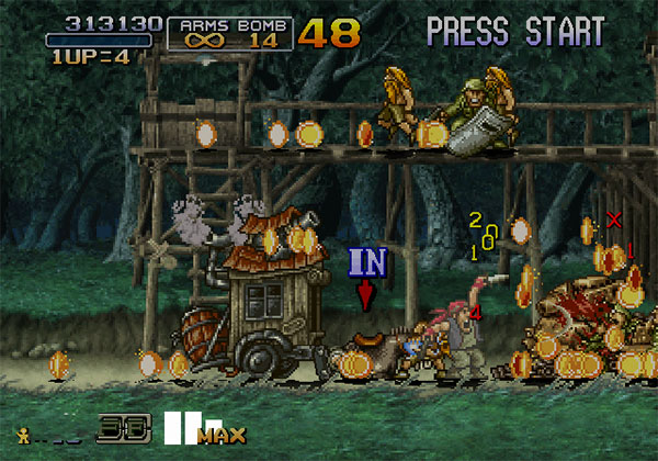 TIP:此场景最后敌人消灭后,自爆驴车可得一堆金币。