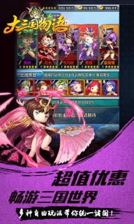 《大三国物语》是一款卡牌角色扮演游戏类游戏,游戏以三国时期的刘备关羽张飞为卖点,不过里面的角色全部变成了女性人物。