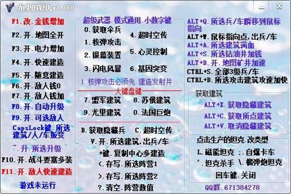 4、尤里的复仇16项修改器风灵月影让你玩红警2,游戏更轻松。