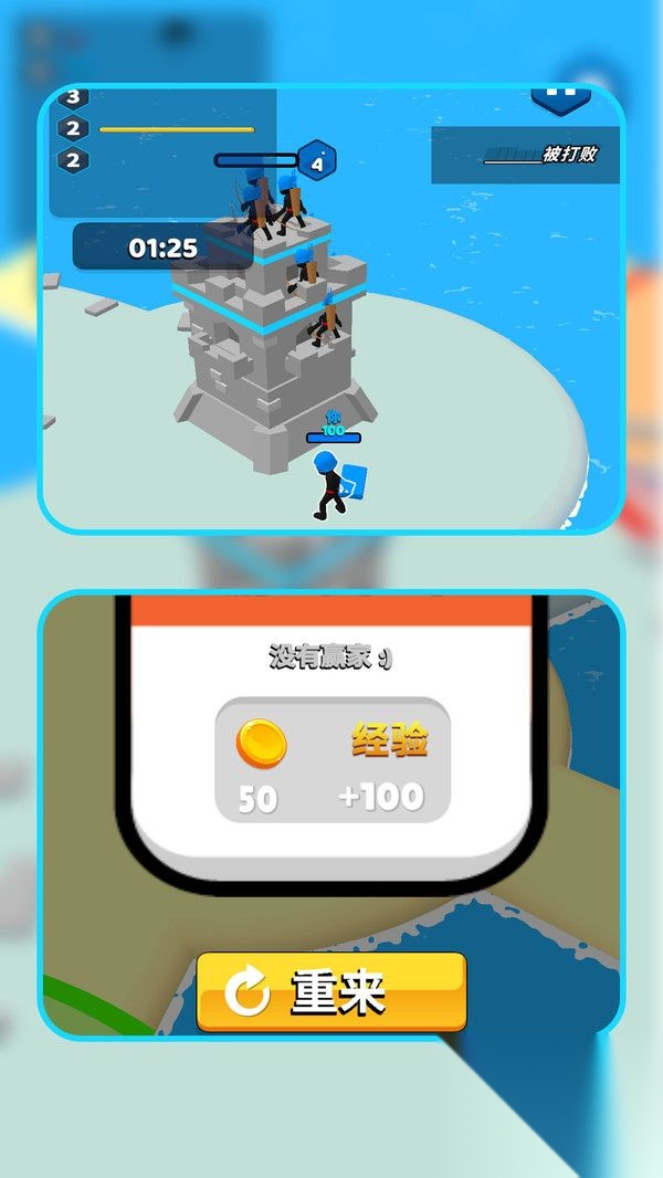 3、如果战斗失败,点击【重来】,利用经验(例如50+100),调整策略后再次挑战关卡,争取获得胜利。