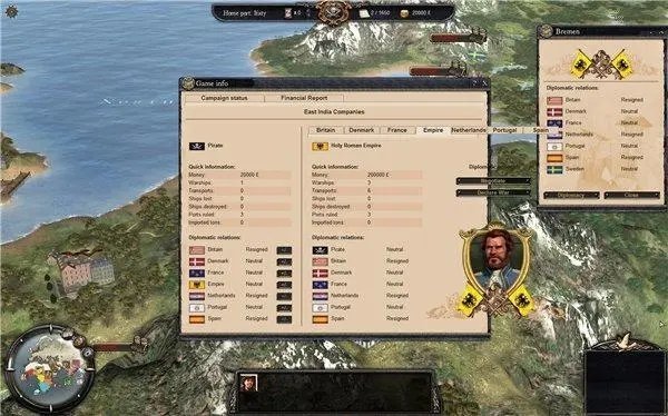 -- 8个可玩的国家:英国、法国、荷兰、葡萄牙、丹麦、瑞典、西班牙和神圣罗马帝国。