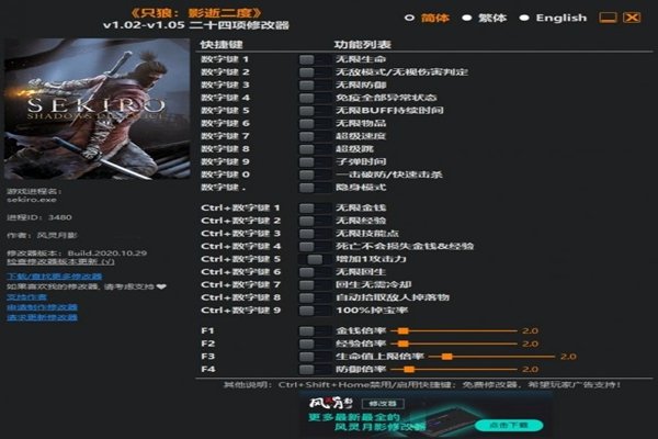 只狼修改器的出现,可以说是大家的福音。只狼这款游戏的难度大家有目共睹,因此可能劝退了很多的玩家,但是有了修改器,相当于往咖啡里加了糖,是非常好的调味品,无限生命,隐身模式,等等。提供更好的游戏体验,点击下载吧。