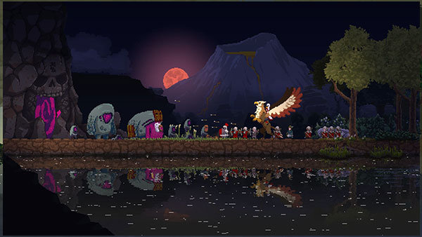 微观策略:担起君主的责任,从无到有,建造自己的王国。探索世界,征招忠诚的子民,保卫王国,抵御夜间来袭的贪婪生物。