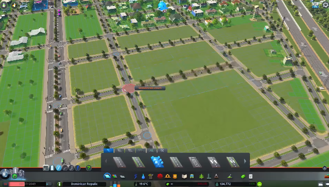商业需要行人便利,非常需要配备【人行道】和【车站】。(人行道在地形工具栏里)