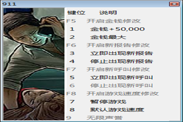 911接线员原创修改器直接获得无限的荣誉,玩过这款游戏的小伙伴会清楚这意味着什么,能对金钱的数量进行修改,还能操控呼叫的出现和暂停,相当细腻的掌控,喜欢的小伙伴,点击下载感受这不一样的玩法经典吧。