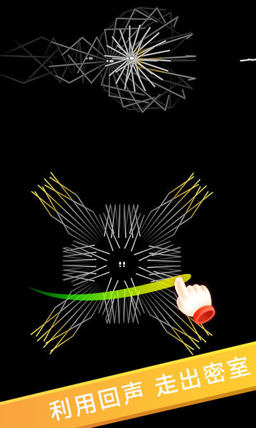 1、游戏中,你甚至看不见迷宫的道路,完全置身黑暗之中。你所能依靠的就是通过点击和长按屏幕发出超声波,再利用回声的图像来判断迷宫的道路,最终走出迷局!