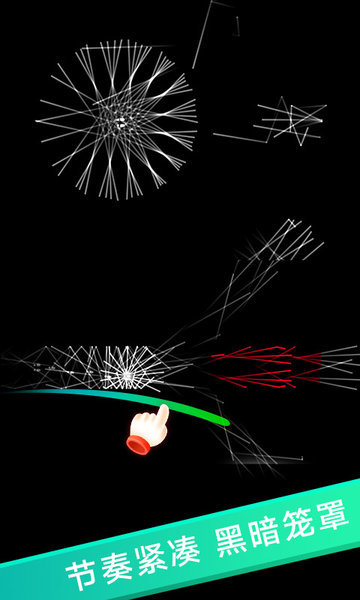 3、游戏中可以让玩家死亡的东西只是黑暗中不可名状的生物,即使如此,通过死亡时的音效以及红色的标示依然让人很紧张。游戏通过声音与简单线条的结合,充分的让人感觉到黑暗中的恐惧,让人不由自主的提心掉胆起来!