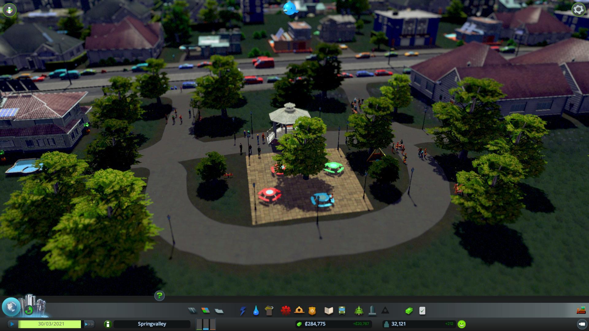 方式三:超级街区(详情请查阅“核爆掩体”的帖子),基础概念就是用公园直接导流居民区到商业区的道路,出门就是公园,公园的路就是去往就是商场的路。