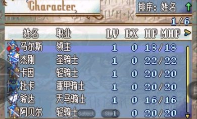 人物成长率/基本属性(HP,攻击力等)/出场武器熟练度;