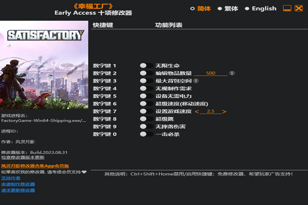 幸福工厂万能修改器是一款风灵月影制作的简体中文修改器,用起来没有任何障碍,小编也为大家准备了详细的按键功能,让你快速打造出世界上最幸福的工厂。可以自主编辑物品的数量,电力能源无穷无尽,点击下载吧。
