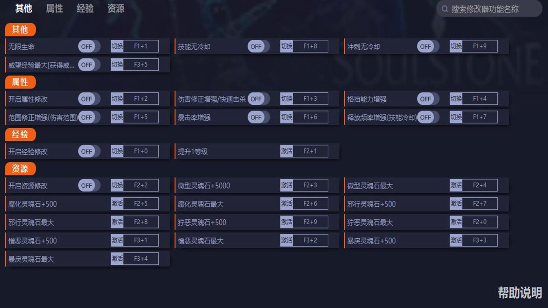 灵魂石幸存者二十二项修改器让你再也不用为各种魂石烦恼,一键将各种魂石的数量最大化,非常的强大,很好用的资源修改功能,喜欢的小伙伴,有资源就意味着有战力,如果还不够,还能开启属性修改,技能,格挡,随意增强,喜欢的小伙伴,点击下载吧。