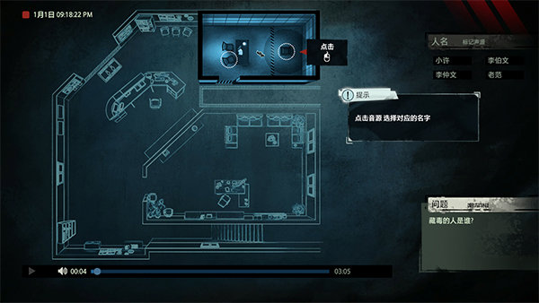 疑案追声(Unheard)将所有案情线索都展示在玩家面前,没有设计任何隐藏的信息,没有任何需要钥匙才能打开的房间,玩家知道的信息和现场人物知道的信息严格对等。