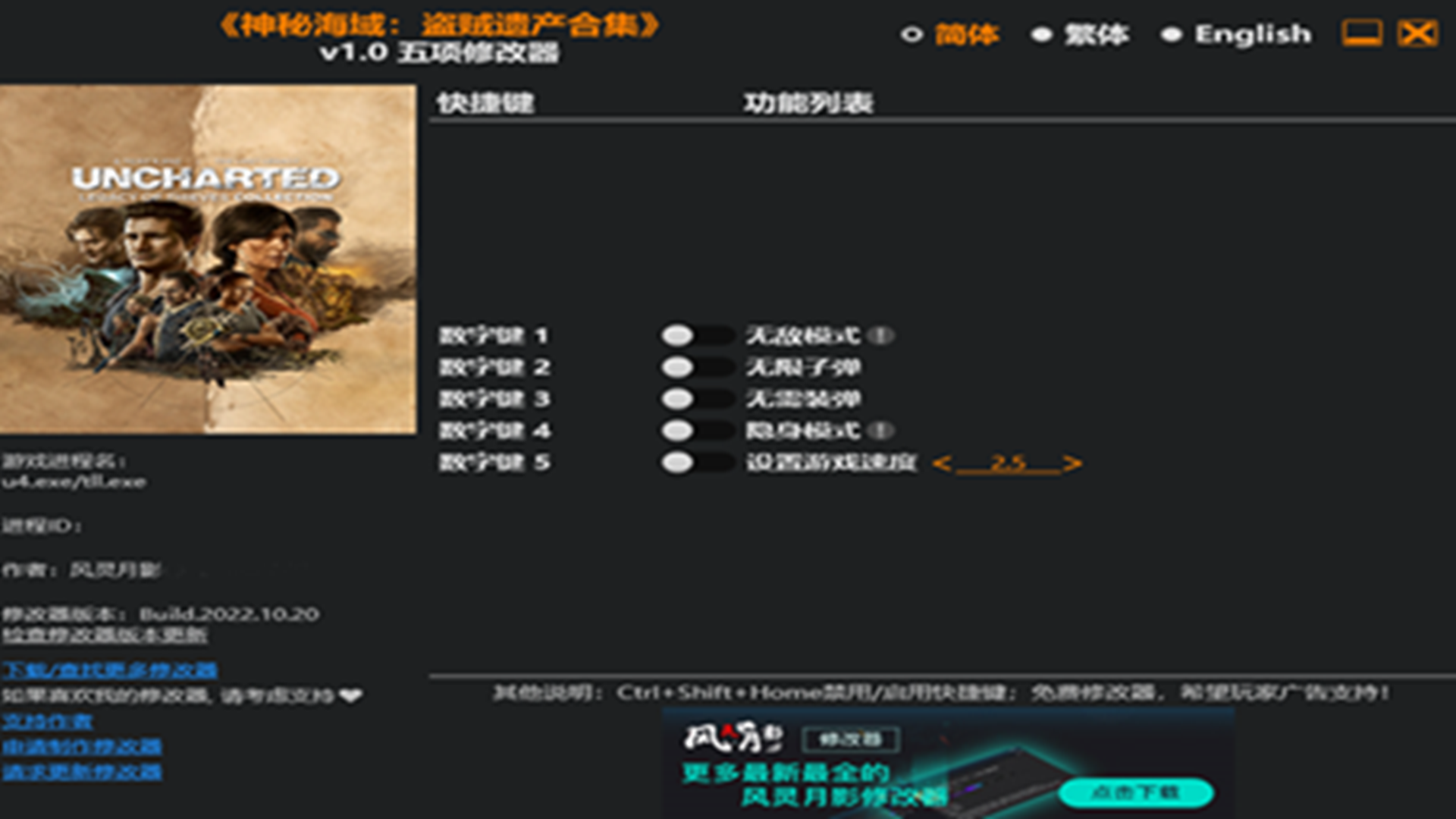 神秘海域修改器带给大家在海洋上进行安全但是惊心动魄大冒险的感觉,在修改器的加持下,你能对各种危险直接无视,还能一键进入隐身模式,无限子弹和无敌金身,不用担心危险,喜欢的小伙伴,点击下载感受吧。