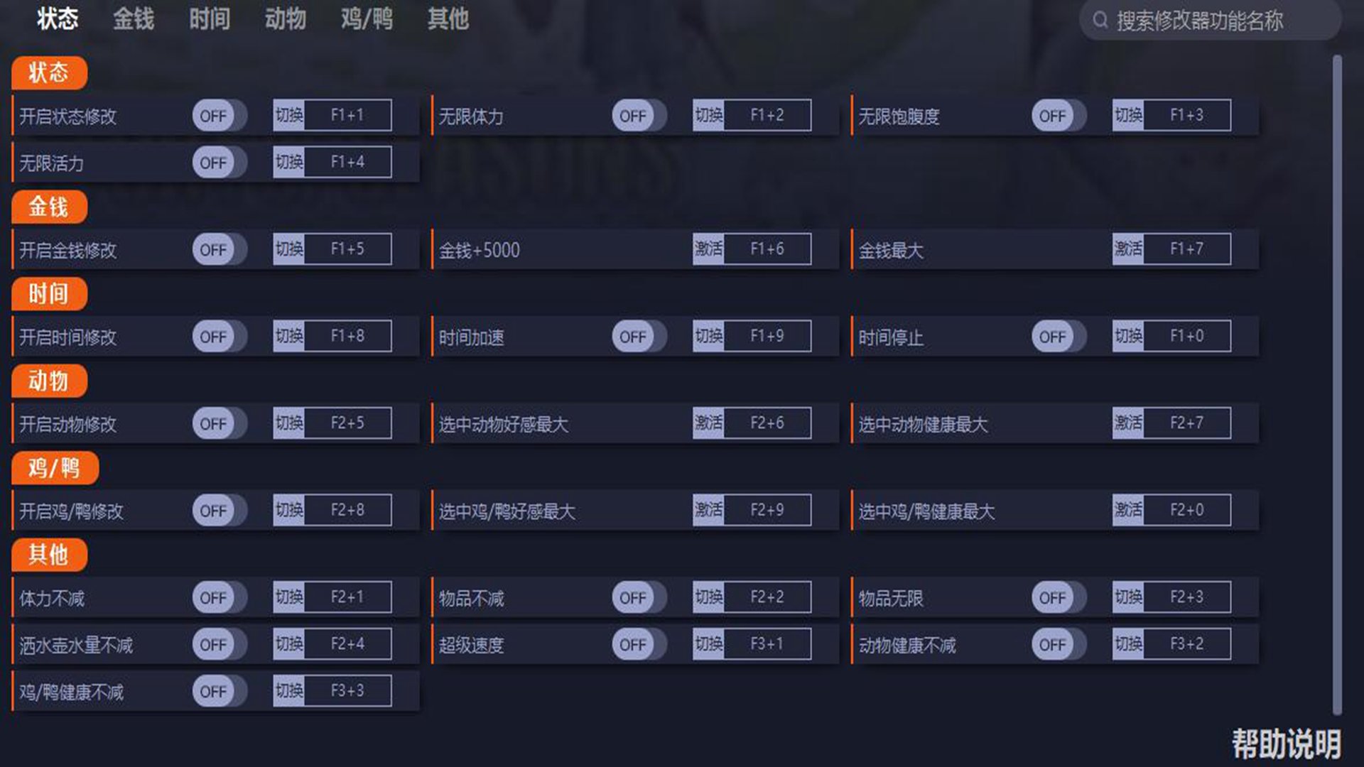 牧场物语十八项修改器让玩家在游戏中,开启状态修改之后,可以获得无限的体力和无限的活力。金钱你可以一次加五百,这样不会破坏游戏的平衡度,要是嫌弃麻烦,一键获得金钱最大。喜欢的小伙伴,点击下载感受这精彩吧。