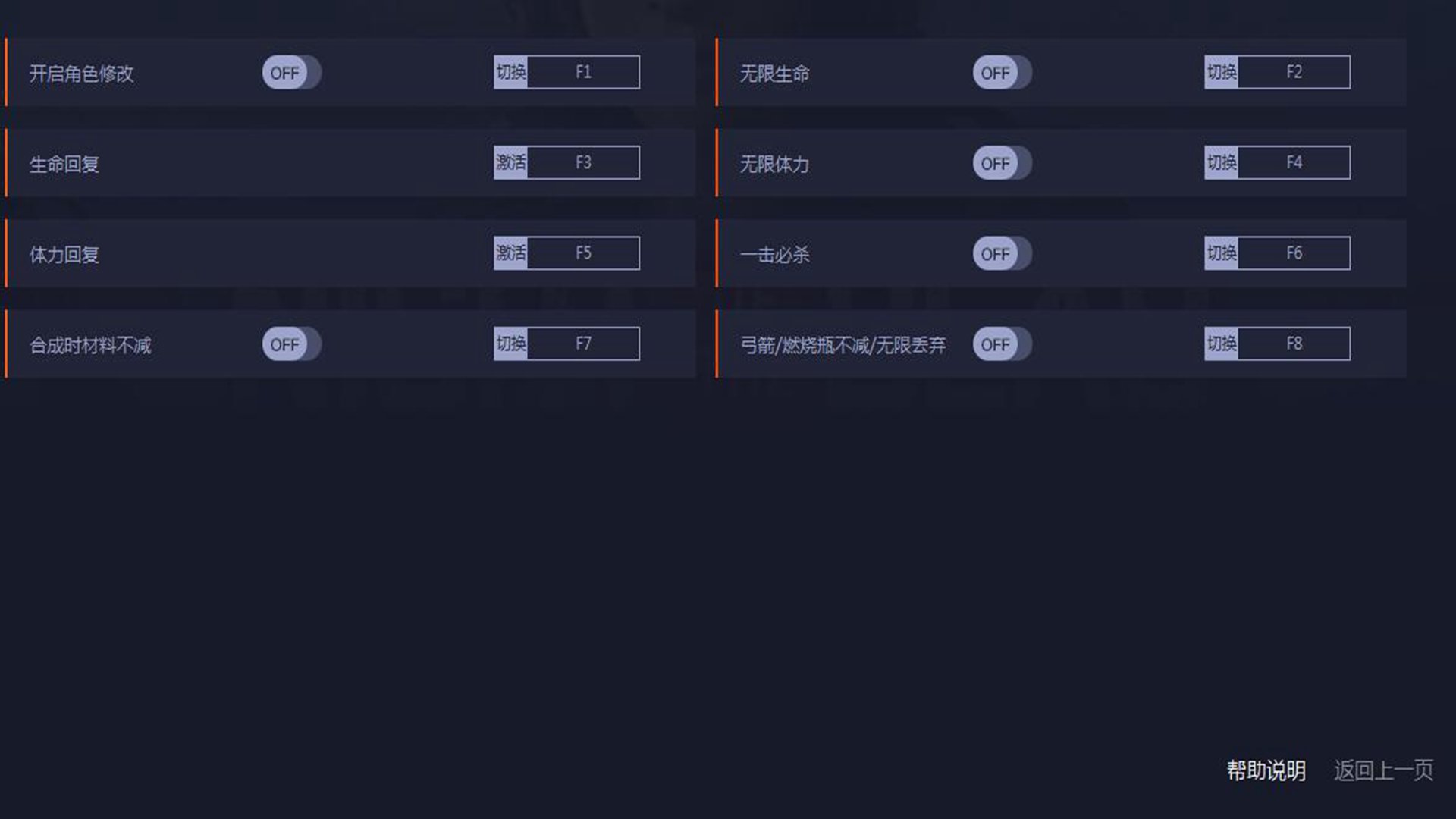 3.开启修改器各主初始项再使用各子修改项[无主初始项则不用开启][主初始项:如开启...修改]。