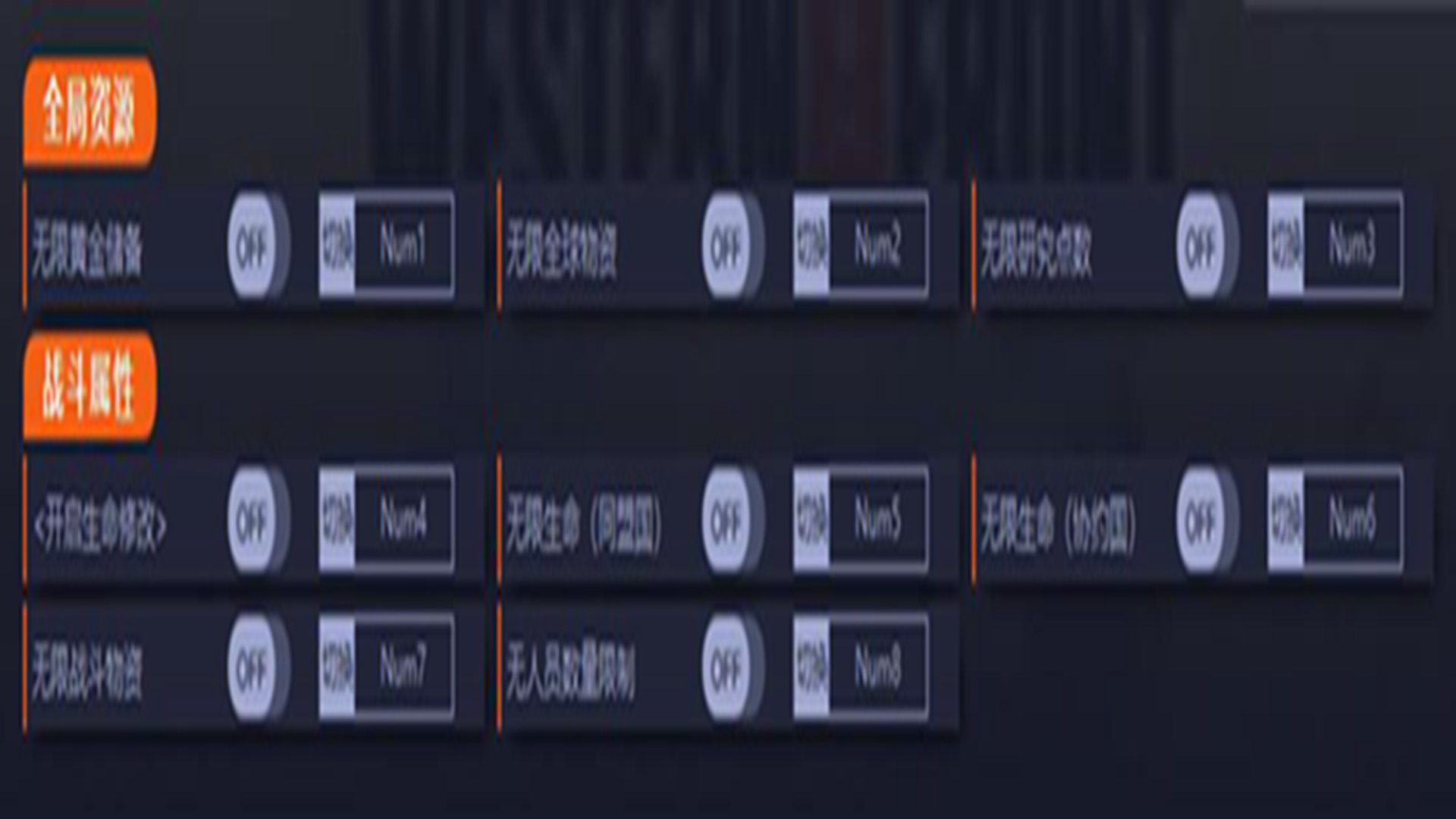3.开启修改器各主初始项再使用各子修改项[无主初始项则不用开启][主初始项:如开启...修改]。