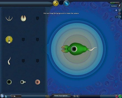 玩家要先从数十亿年前的单细胞生物开始,逐渐进化成多细胞生物,再进一步发展大脑功能,最后产生群集生物,体验生命进化的过程。此外,游戏也具备战略要素和简易编辑器,玩家可控制生物发展文明,甚至可以透过武力而征服其他星球。至于游戏编辑器,则能让玩家自己设计游戏内容。