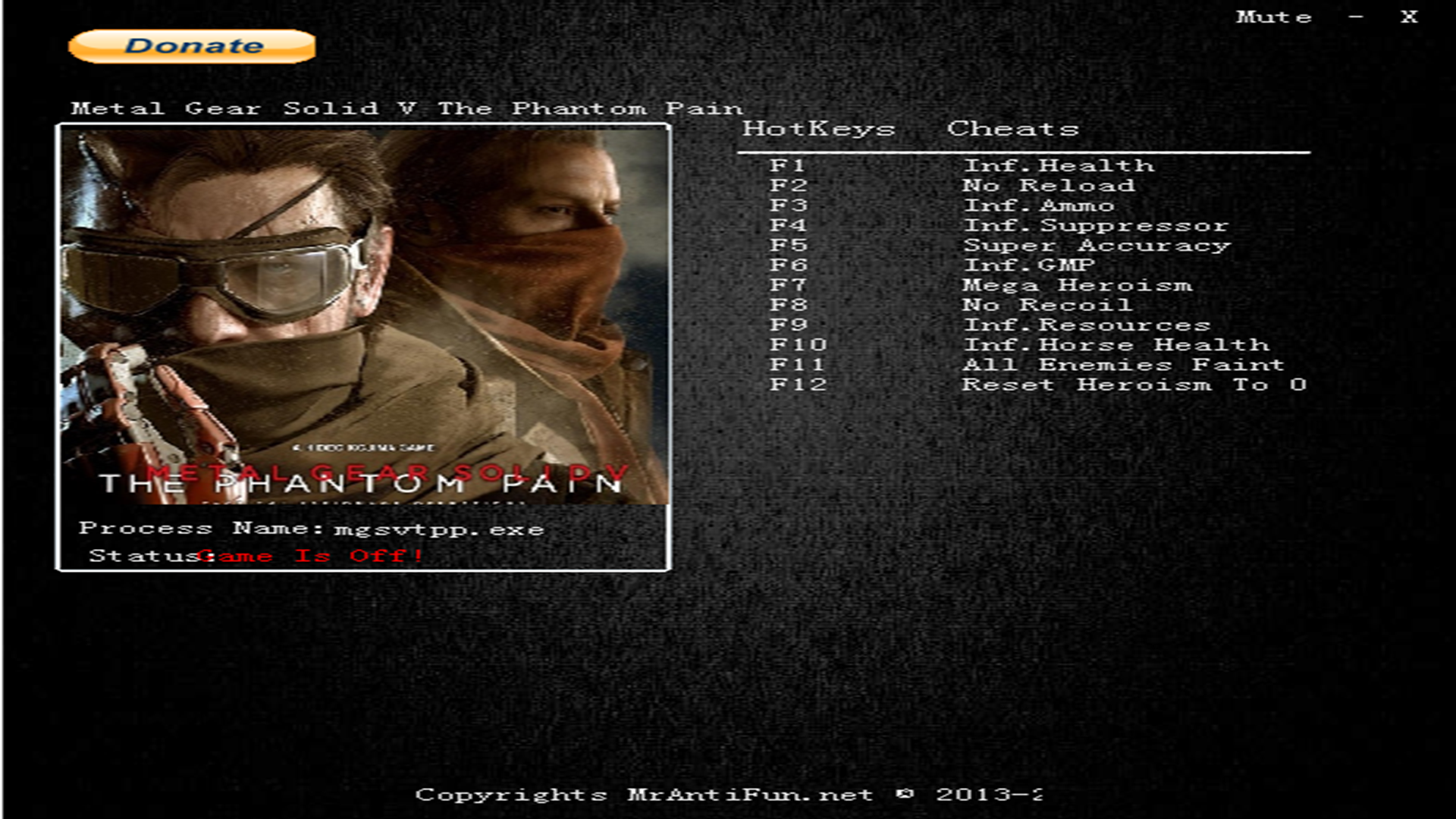 合金装备5幻痛十二项修改器能够提供十分多样的修改功能,这里玩家不仅可以获得各种无限制的资源。还有一键获得众多的英雄点数,化身为强大的六边形战士。还能一键让全部敌人晕倒,十分好用,喜欢的小伙伴,点击下载感受吧。